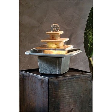 Композиция этого водопада для дома выполнена из квадратов разных размеров, расположенных ступенями. Классическую форму фонтана дополняет текстура камня, придающая ему поистине древний вид. Успокаивающее действие этого «оазиса медитации» приводит к равновесию.